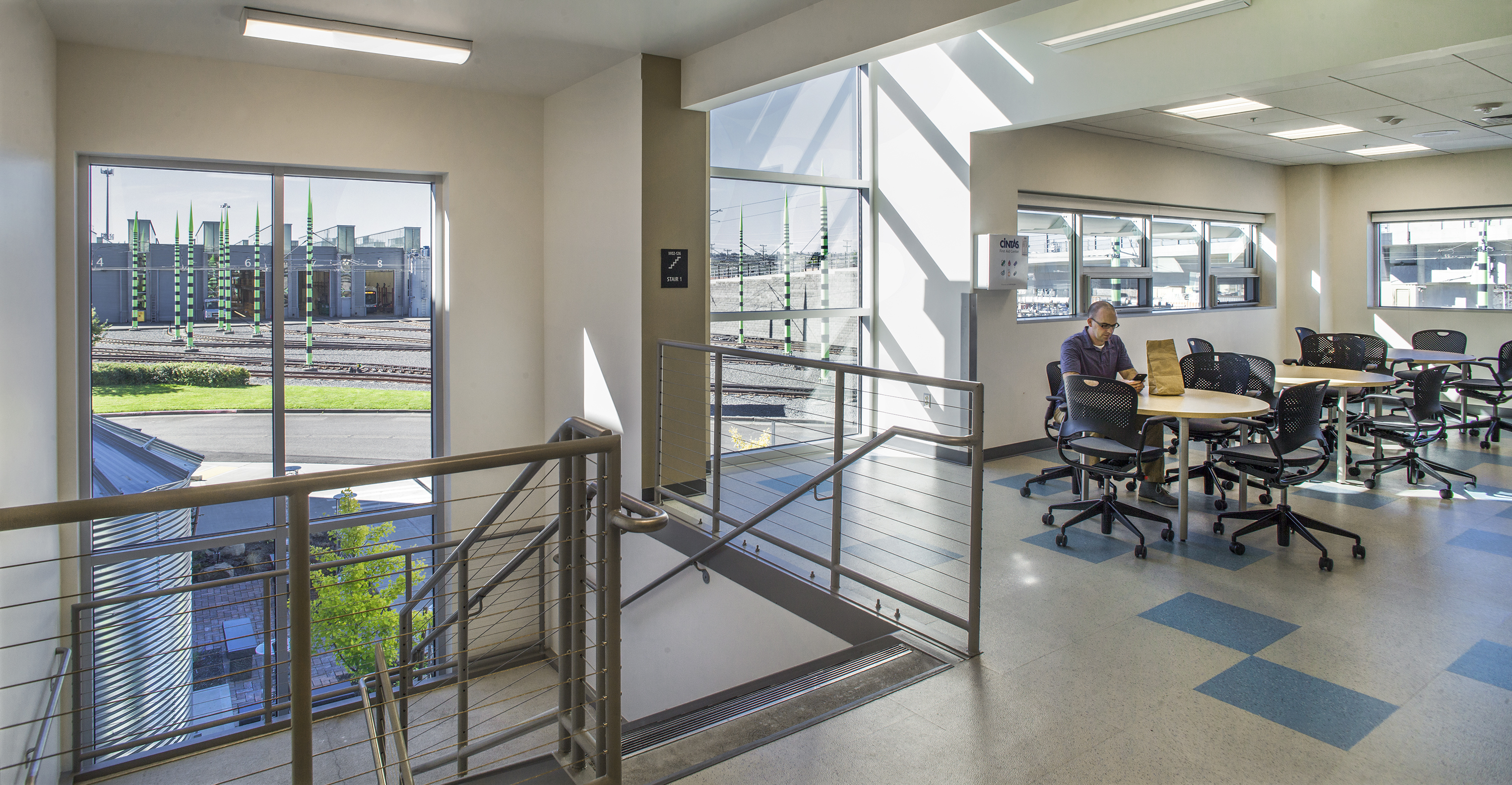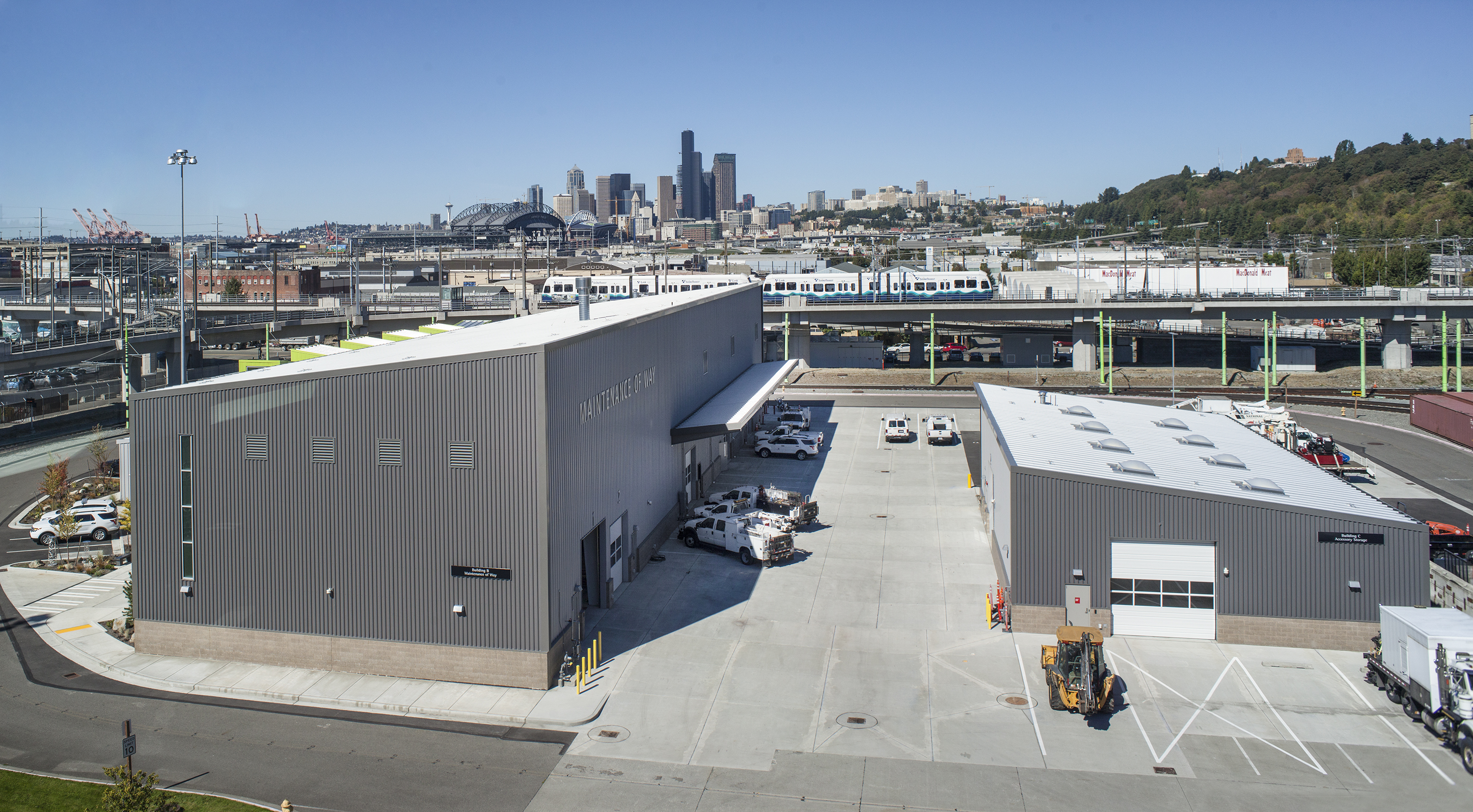 Sited within a larger campus operated by the Central Puget Sound Regional Transit Authority (Sound Transit), the new 2-building Maintenance of Way (MOW) facility supports 35+ vehicles and 80+ personnel for the Track, Facilities and Power Departments of light rail operations. Program areas include administrative offices for the MOW and Police staff, fabrication areas, parts storage, training rooms, and locker rooms. The project, awarded through a competitive Design-Build process with FORMA Construction, attained LEED Silver certification.