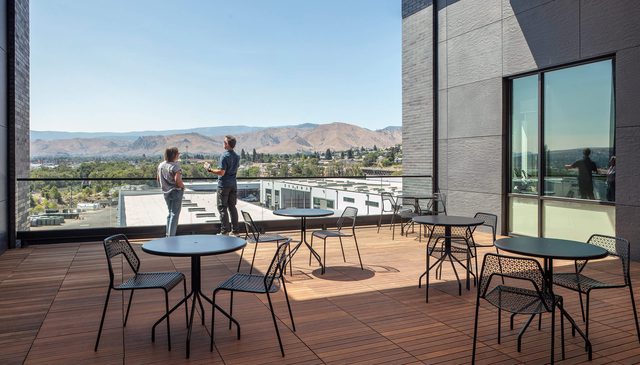 The vision for this new facility extended beyond simple replacement, instead reaching for civic landmark in reflection of the PUD’s foundational role in the region. The architecture draws inspiration from the exposed basalt cliffs surrounding the river basin. Robust material selections and textured façades echo this natural geology, giving the facility an enduring, authentic extension of the landscape it serves. Public amenities invite guests to explore the outdoor plaza, meet with a PUD engineer, or simply enjoy a leisurely lunch in the cafe. Together, the distinctive massing, prominent siting, and welcoming features reinforce the Service Center as an essential asset to residents of Chelan County and beyond.